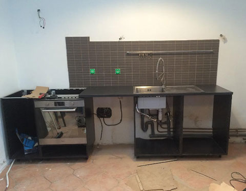 Travaux préparatoires et pose d'une cuisine et de ces équipements.