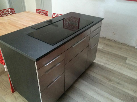 L'ilôt central avec plaque de cuisson à induction et hotte