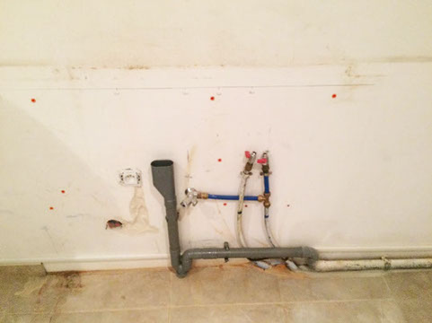 Travaux préparatoires avant pose par un cuisiniste, incluant démontage de l'existant et modification électricité-plomberie.